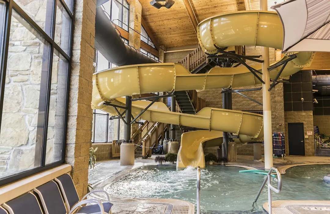 Recreational activities abound at Abe Martin Lodge & Cabins, with an indoor water park featuring twisting slides and lazy rivers. Horseback riding, hiking, and mountain biking can be coordinated nearby, along with access to scenic trails and recreational facilities within Brown County State Park.