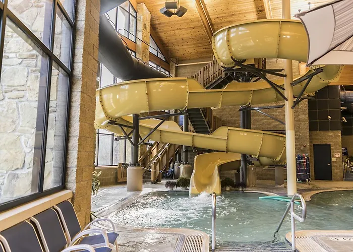 Abe Martin Lodge & Cabins offers a unique stay within Indiana's largest state park, featuring a variety of accommodations including lodge rooms, cabins, and suites. This 3-star Nashville hotel boasts an indoor water park and a restaurant serving local cuisine.