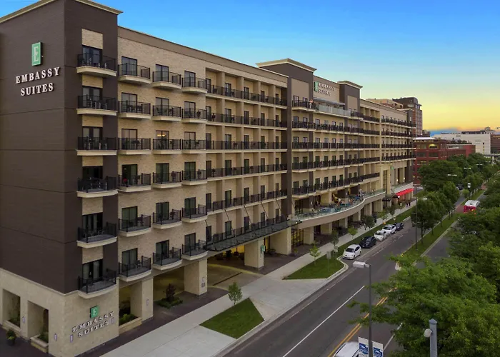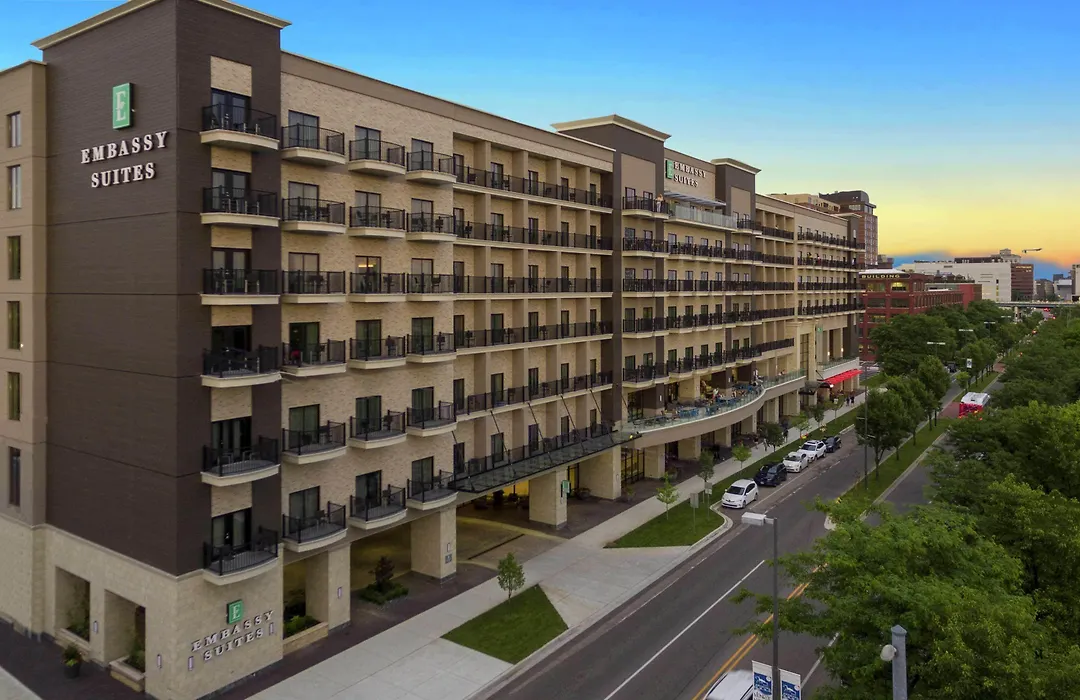 Embassy Suites By Hilton Grand Rapids Downtown is a 4-star hotel rated 9.1/10 on Booking.com, offering free cooked-to-order breakfast and a complimentary Evening Reception. Additional amenities include a restaurant, fitness center, bar, and free WiFi.