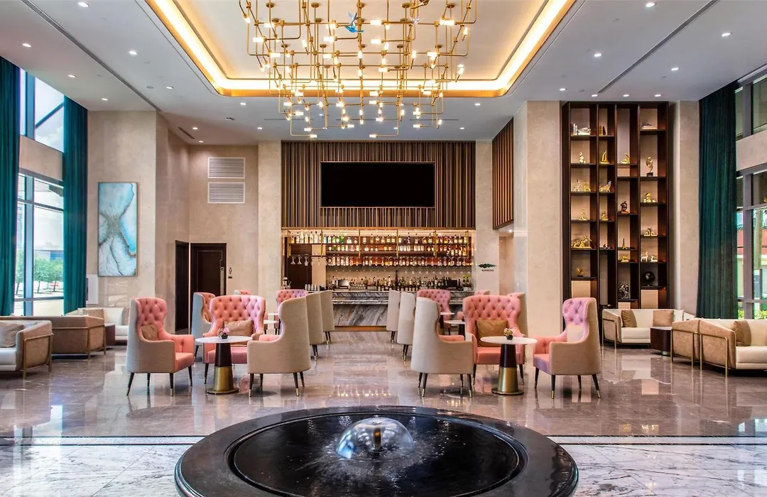 The hotel offers spacious, air-conditioned rooms featuring 50' Samsung Smart TVs, Nespresso coffee machines, and marble bathrooms with rainfall showerheads. Each guestroom includes high-end bath amenities, soundproofing, and plush bedding for comfort.