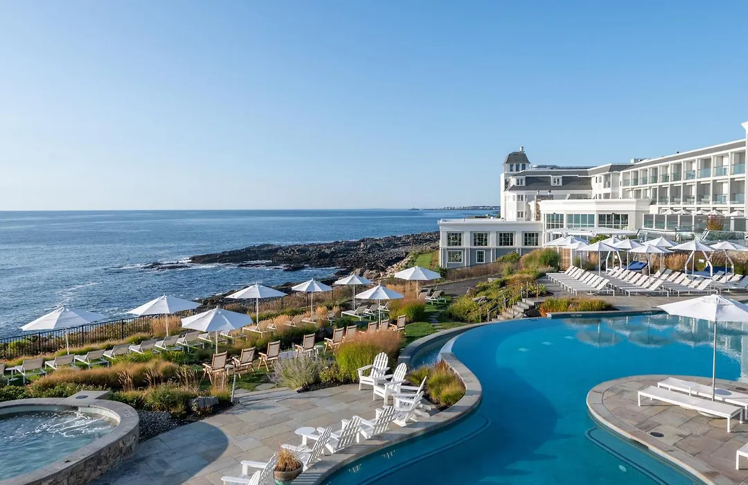 Leisure facilities include a year-round indoor lap pool, an outdoor saltwater hot tub, and a family-friendly cove pool. The Spa at Cliff House Maine offers a range of wellness treatments and classes, while outdoor activities are organized nearby, including hiking and visiting landmarks such as Nubble Lighthouse.