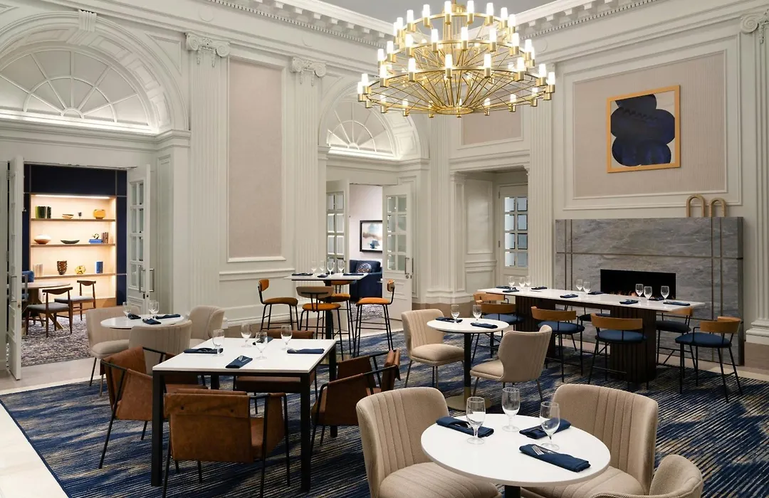 Rooms at Courtyard By Marriott Philadelphia Downtown include comforts such as mini-fridges and Illy coffee makers, with options for suites. The hotel incorporates design elements like natural light streaming through the 75-foot central atrium courtyard and classic woodwork, which highlights the historic charm of the building.