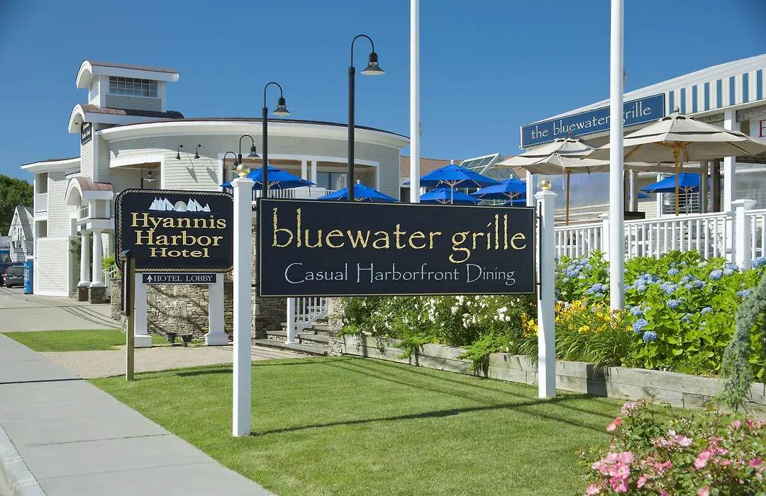 Dining options include The Raw Bar at the Bluewater Grille, a seasonal outdoor restaurant offering local cuisine and fresh seafood overlooking Hyannis Harbor. Nearby restaurants such as Black Cat Tavern and Baxter's Seafood Restaurant provide additional choices within walking distance.