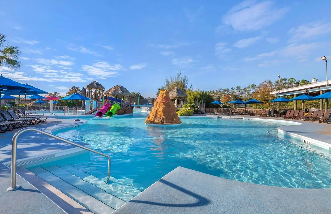 Leisure facilities feature the 1.5-acre Liki Tiki Lagoon Water Adventure Park, which includes five water slides and an erupting water volcano. Guests can also enjoy two expansive heated pools and a complimentary 9-hole miniature golf course.