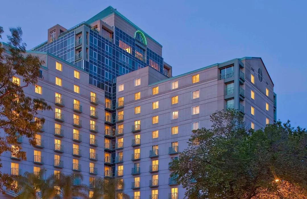 Hyatt Regency Sacramento, a 4-star hotel with an 8.5/10 Booking.com rating, features a full-service spa and an outdoor heated pool. This luxury hotel offers two onsite restaurants, including the acclaimed Dawson's Steakhouse, and is conveniently situated next to the State Capitol and Sacramento Convention Center.