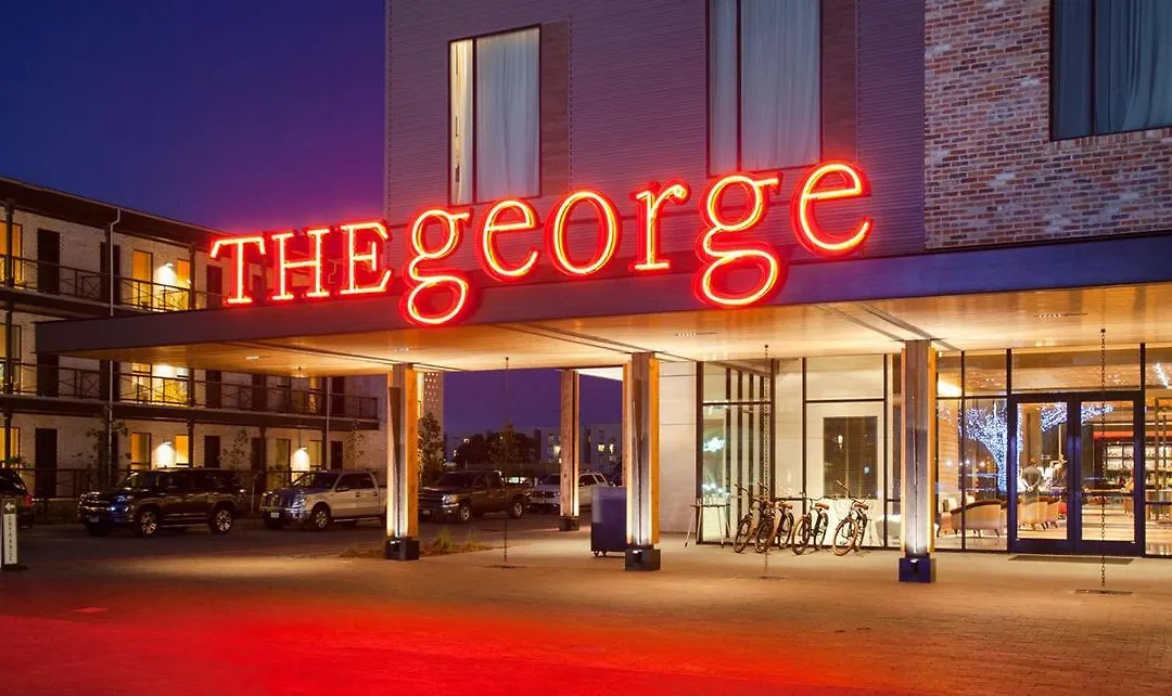 Guests of The George can relax by the outdoor swimming pool or utilize the fitness center. Additionally, the hotel offers a Texas-sized porch with rocking chairs and fire pits, creating an inviting outdoor space for socializing.