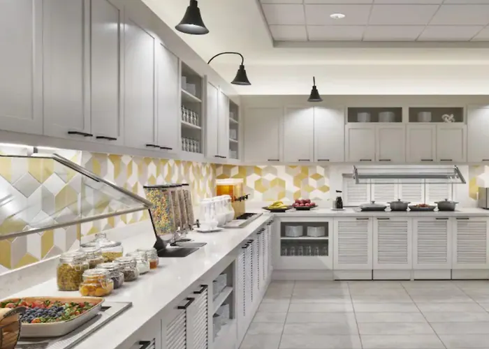 Dining options at the Hyatt Place include a restaurant serving American cuisine and The Bar, which offers regionally inspired food and premium beverages. Guests can also enjoy a complimentary buffet breakfast on weekdays featuring hot items, fresh fruit, oatmeal, and more. The Market provides grab-and-go items ranging from snacks to salads.