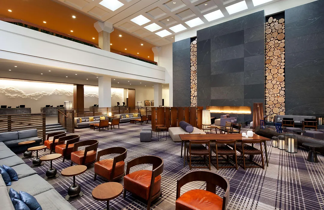Hyatt Regency Minneapolis is a modern 4-star hotel featuring sleek mid-century Scandinavian décor, a large lobby with an expansive stone fireplace, and a prime downtown location with convenient access to local attractions. The hotel offers amenities such as a StayFit(TM) gym and versatile meeting facilities totaling 74000 sq ft.