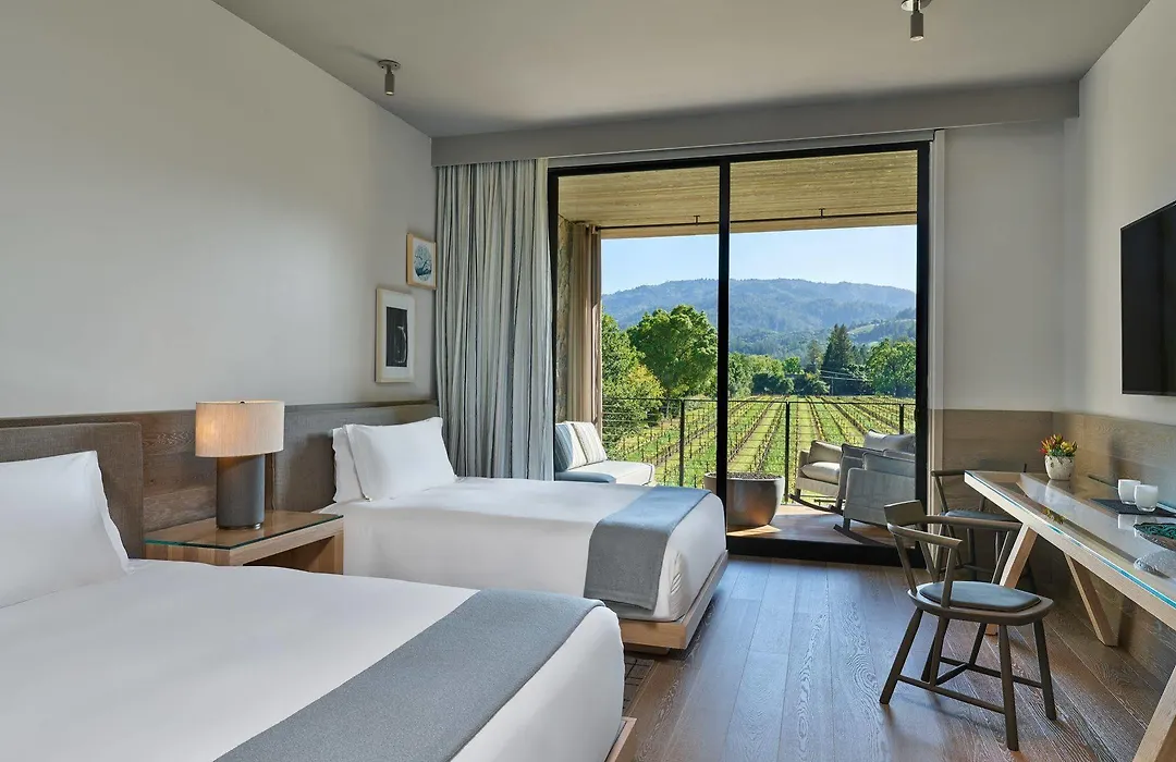 Alila Napa Valley, A Hyatt Resort is a five-star hotel featuring an attached winery, outdoor swimming pool, and a fitness center. Guests can enjoy proximity to various wineries and an on-site restaurant, Acacia House, known for modern California cuisine.