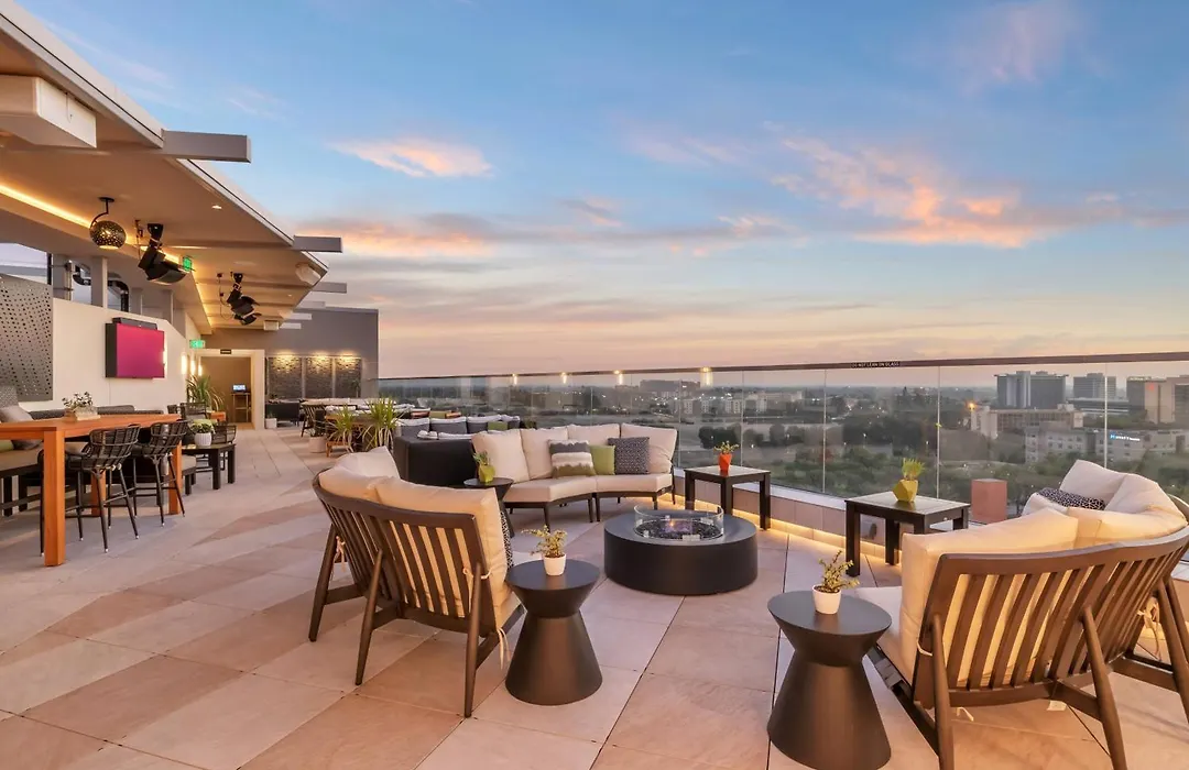 Dining options include the signature Tocca Ferro Italian Chophouse, serving locally inspired dishes. Guests can also enjoy cocktails and light bites at the Citriculture lobby pool bar or visit the rooftop Parkestry Rooftop Bar for panoramic views and seasonal fireworks.