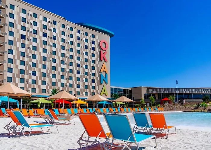 Okana Resort And Indoor Waterpark offers a family-friendly experience with an indoor waterpark and various recreational facilities. This 8.1/10 rated Oklahoma City hotel includes a spa and wellness center, a bar, and a terrace for guests to enjoy.