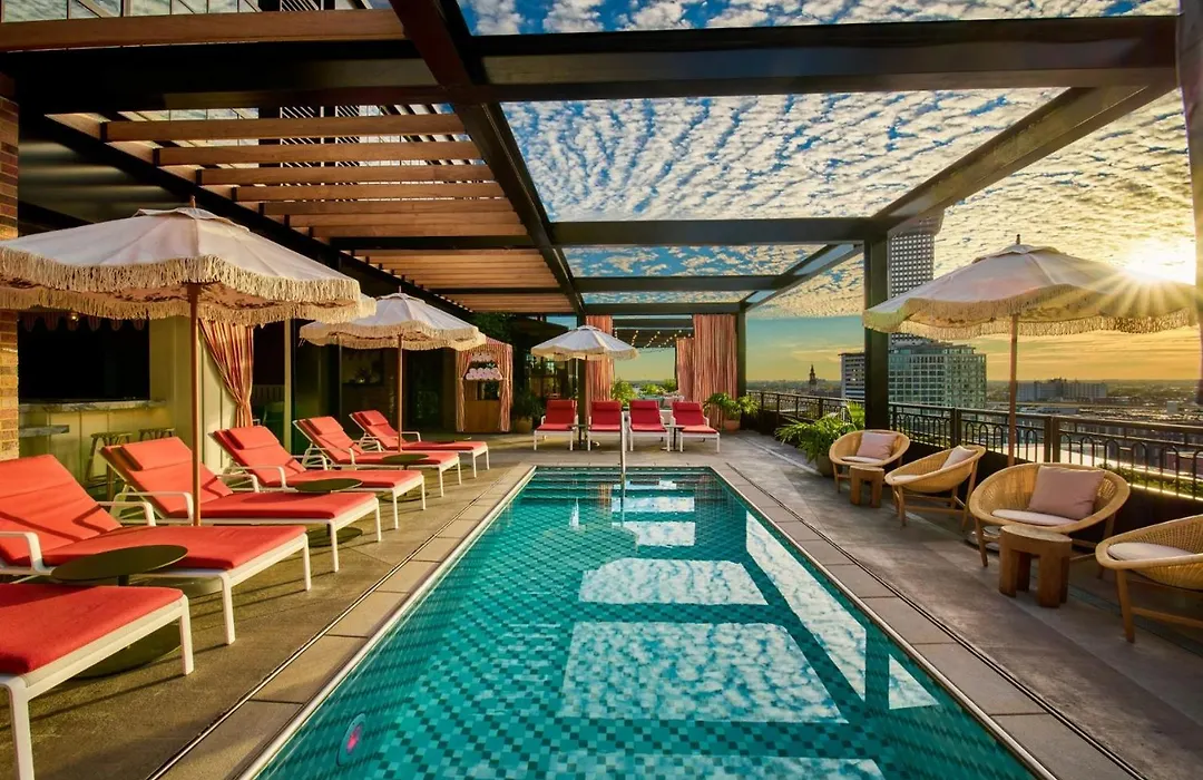 Virgin Hotels New Orleans, a 4-star hotel with a 9.0 Booking.com rating, features a stunning rooftop pool with city views. This pet-friendly hotel offers amenities such as a fitness center, nightclub, and a restaurant led by local Chef Alex Harrell.